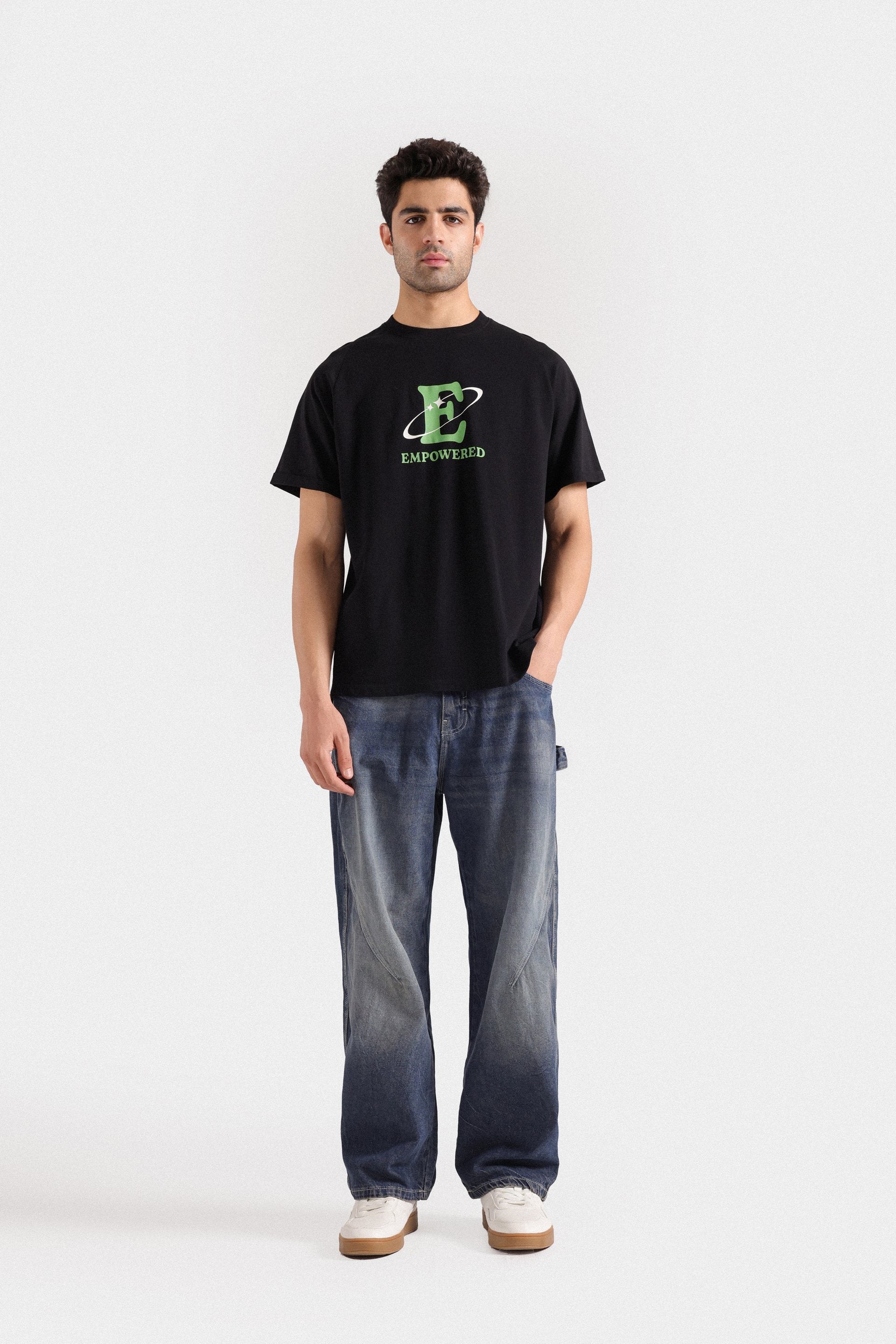 Comfort all the way comfortably loose fit with drop shoulders that does not hug the body. Stands in the middle of an oversized and regular fit, making movement easy